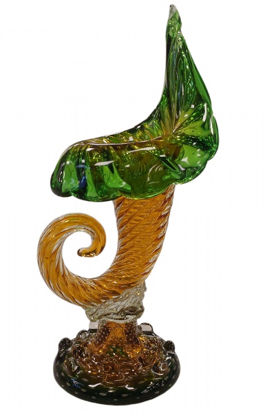 • Magnifica e belíssima "CORNUCÓPIA EM MURANO"  Com contorno frisos e bolhas. Medidas: Alt. 57 x 20 cm.