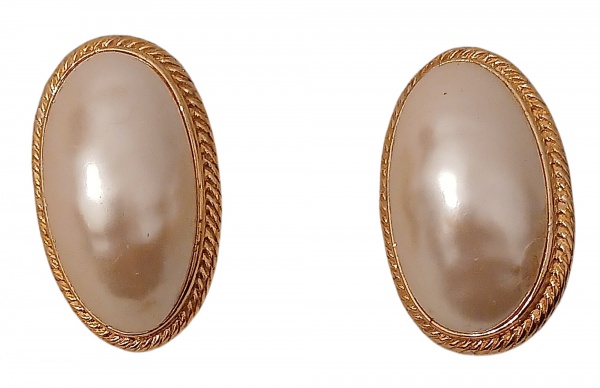• GIVENCHY NEW YORK - Par de brincos de pressão em metal dourado, no formato oval. Selos da Maison.  Medidas: 2.5 04 cm.