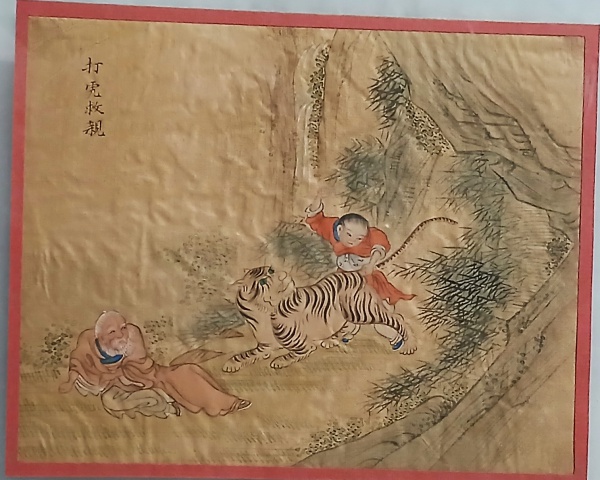 • Par de pinturas chinesas sobre fino tecido, apresenta assinatura. Medidas totais: 33 x 36 cm só pintura  21 x 16 cm