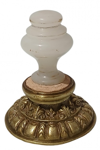 • Bela Pinha em opalina com base moldada em bronze com trabalho em alta relevo. Medidas: Alt. 14 x 11 cm.