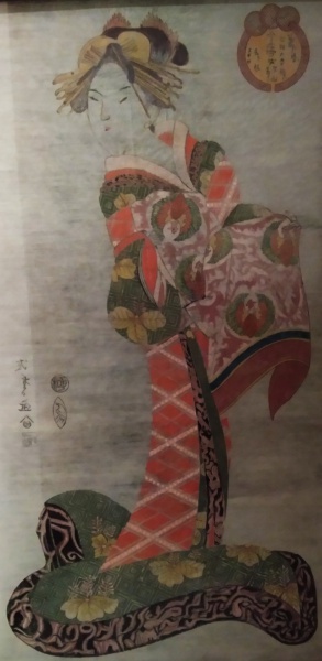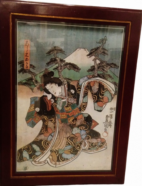 • Utamaro - Pintura sobre seda japonesa com figuras.  Medidas 43 x 53 cm.