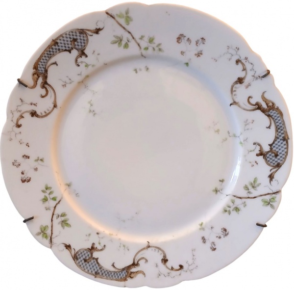 • Prato em porcelana francesa , decorado com pinturas com flores. Medidas: 25 x 03 cm. (Prato esta com bicado na borda e fio de cabelo)